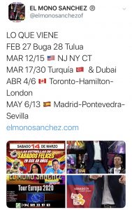 Eventos febrero 14, 2020 MARZO 2020 By Carlos "El Mono" Sanchez Show: SOMOS COLOMBIANOS Y QUE Lugar: Virtuales -Streaming HD Fecha: 2020 Hora: Estimado 45 mins / $5.000.000.oo Una producción El Mono Sanchez Share
